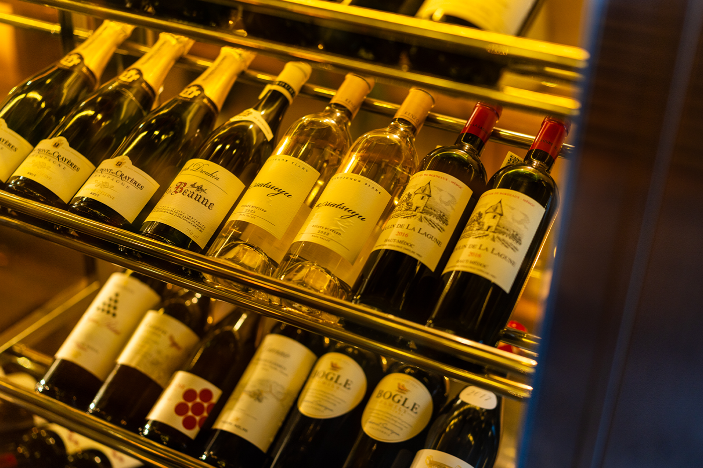 180本収納可能なワインセラーには、クラシックな銘柄からニューワールド、ナチュラルワインまで幅広く取り揃えています。