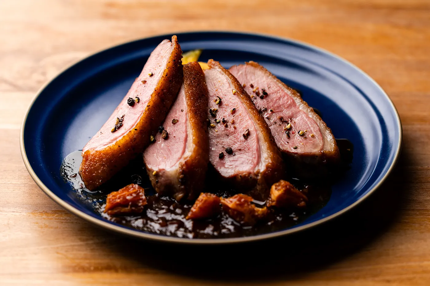 じっくりとローストした鴨胸肉を、コクのあるバルサミコソースでお召し上がりください。